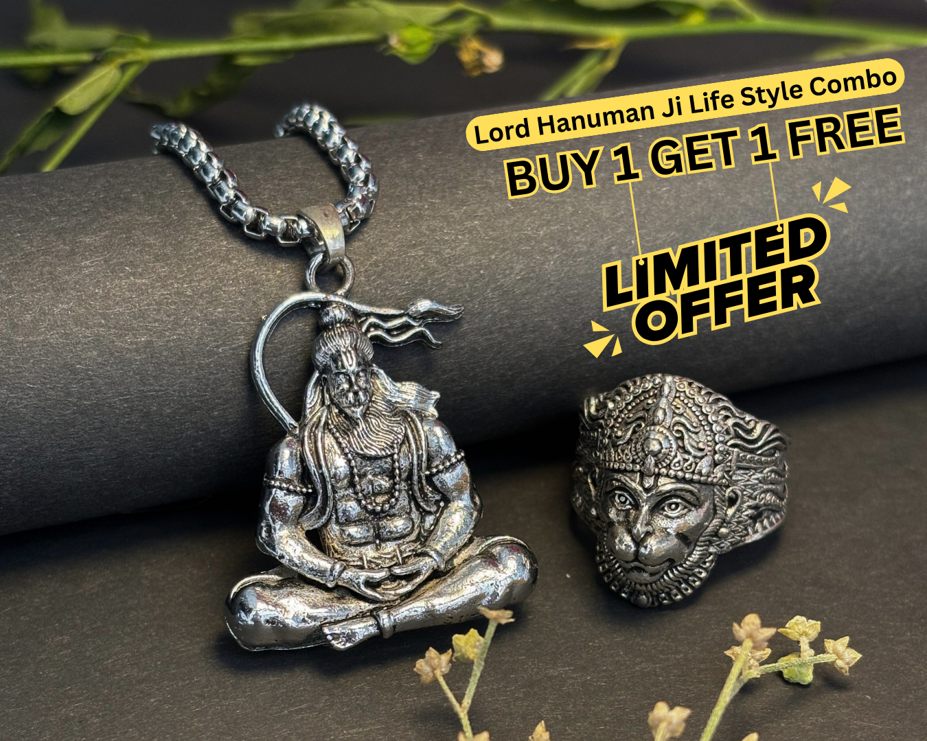 Elevate your spiritual journey with our Hanumanji Necklace & Ring Combo! This exclusive offer celebrates the divine power of Lord Hanuman with intricately designed jewelry that embodies devotion, strength, and blessings.